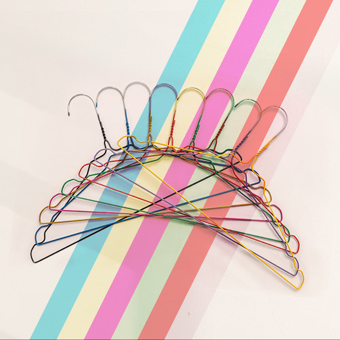 Der Rainbow Kleiderbügel besteht aus stabilem Metalldraht mit 2,3 mm Stärke und ist für eine langfristige Nutzung ausgelegt. Die pulverbeschichtete Oberfläche mit korrosionsschützendem Zinkmantel schützt vor Rost und sorgt für eine langlebige Qualität.