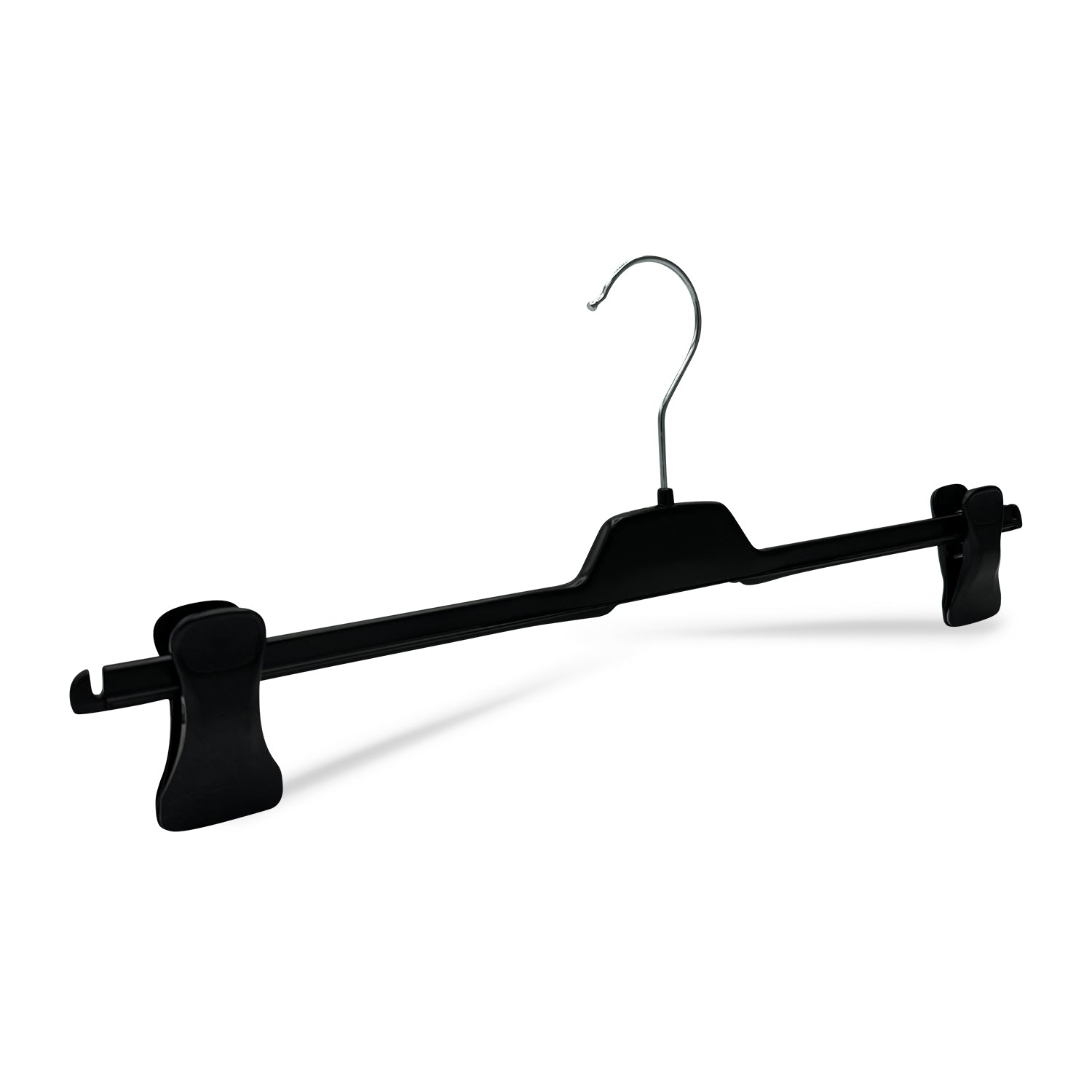 Verschiebbare Klammern mit Weichgummieinlage halten Textilien sicher fest, ohne Druckstellen zu hinterlassen. Dadurch eignet sich der Hosenspanner sowohl für den privaten Kleiderschrank als auch für den professionellen Einsatz im Handel.